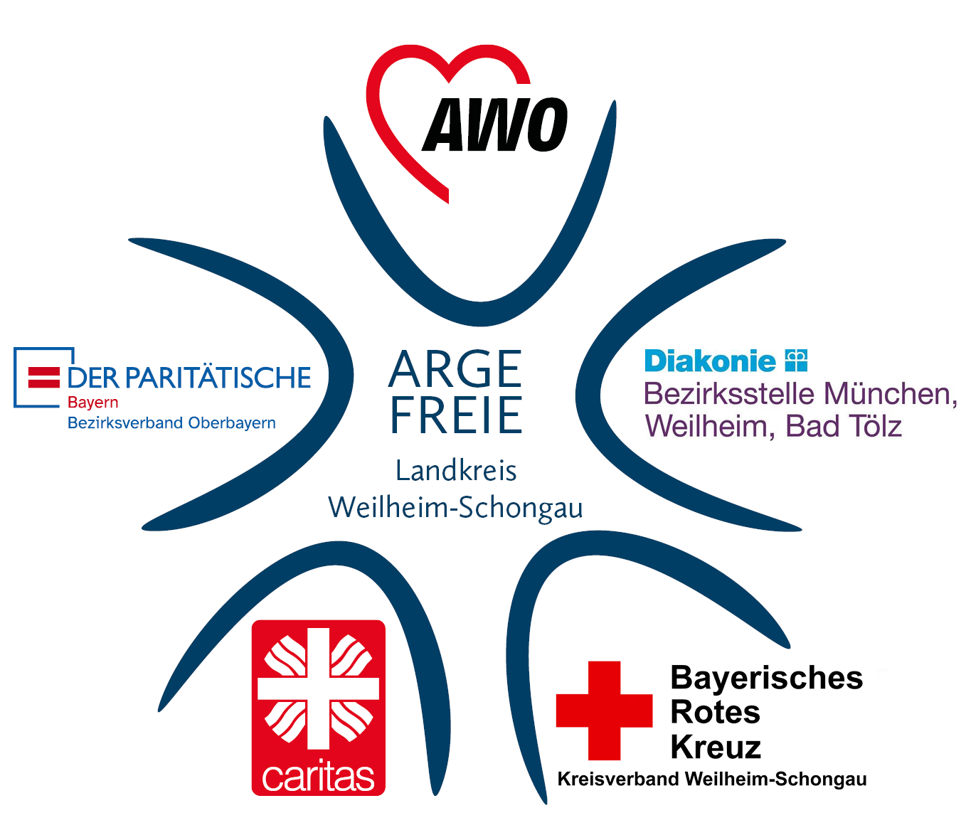 Die ARGE FREIE WM-SOG berät und vertritt die Interessen der im Landkreis tätigen Träger der freien Wohlfahrtshilfe folgender Spitzenverbände: